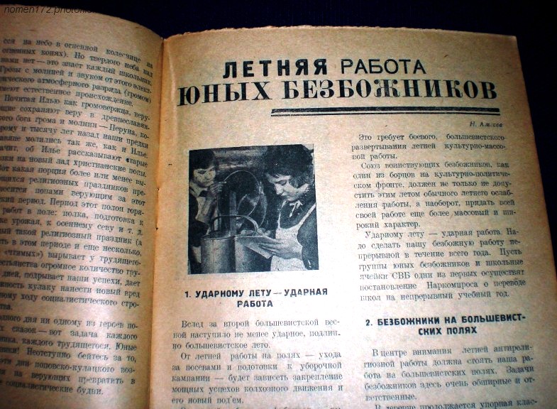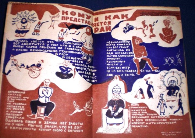 არა საკმაოდაა გამოყენებული აგრეთვე ანტირელიგიური თამაშობანი, მიუხედავად იმისა, რომ ამ მხრივ ჩვენ ამჟამად საკმაო მასალა მოგვეპოვება (იხ. სლიაზერის წიგნები „კომკავშირული აღდგომა“, „უღმერთოს დასვენება“ და სხვა)